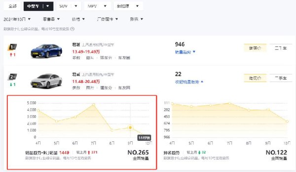 看成参考,今天咱们的话题主要围绕十万块出面的预算能买到一款什么样的B级车进行。全球一齐望望,今天的B级二手车还要价十万多,使用一段周期到底还值不值。参考平台挂售的车辆信息,有一款2024款别克君威 25T 超享版值得一看。来自上汽通用别克汽车的别克君威自从改款以后,销量便有了瓦解的变化,8月售出1078辆,9月售出1449辆,10月销量断崖式下降,仅售出22辆。在出乎猜想的市集竞争压力下,君威在末端市集的新车价钱也发生了较大的行情波动。